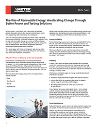 风力发电作为一种可再生能源,正在迅速发展,风力发电装置数量甚至超过了太阳能。风力发电机设计的评估需要进行大量的模拟和测试。在本白皮书中,阿美特克的电源专家介绍了交流/直流电源和负载如何在开发和测试风力涡轮机的硬件和控制算法等方面应用中发挥的关键作用。